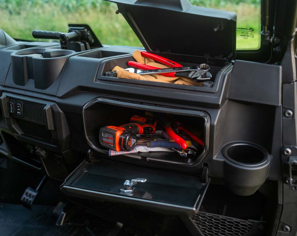 El RANGER XP 1000 está a la altura de las circunstancias, ya sea para transportar provisiones, arrastrar un remolque o conducir con un grupo de 6 personas. El motor de doble árbol de levas en culata (DOHC) proporciona 82 CV, y el control del acelerador de tres modos te permite optimizar la potencia para el trabajo que tengas entre manos.