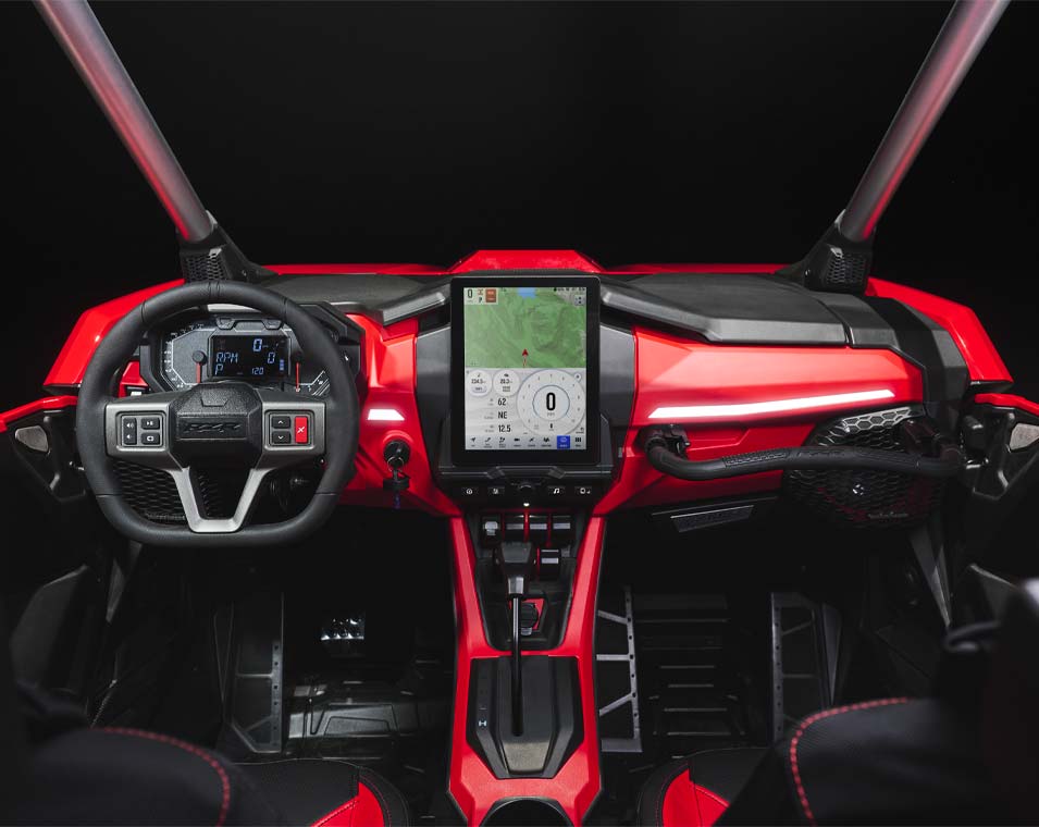 La victoria comienza desde dentro, y el RZR Pro R no es una excepción. Su interior está meticulosamente diseñado para ofrecer mayor comodidad y practicidad, lo que le permite recorrer distancias más largas, conducir con más intensidad y terminar en primer lugar.