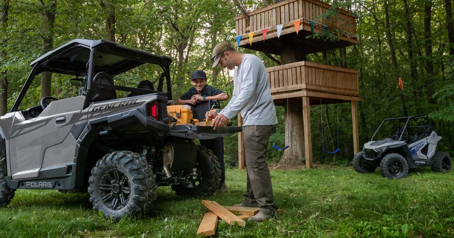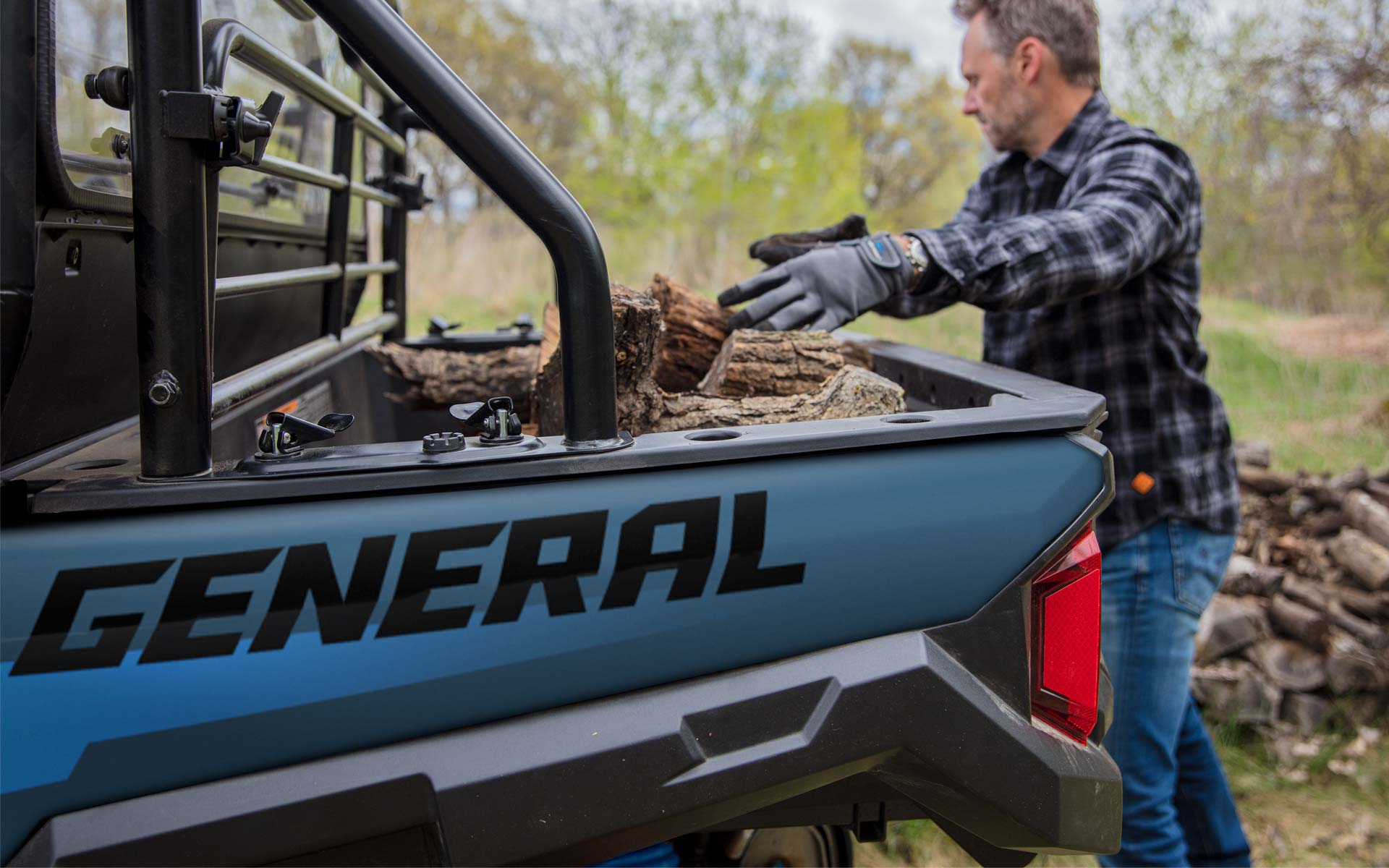 ¿Te enorgullece estar preparado para todo? ¿Quieres una máquina que también lo esté? Hazte con un GENERAL. Desde el transporte hasta el remolque, desde el cabestrante hasta la conducción por senderos, conoce el versátil side-by-side preparado para hacerlo todo contigo.